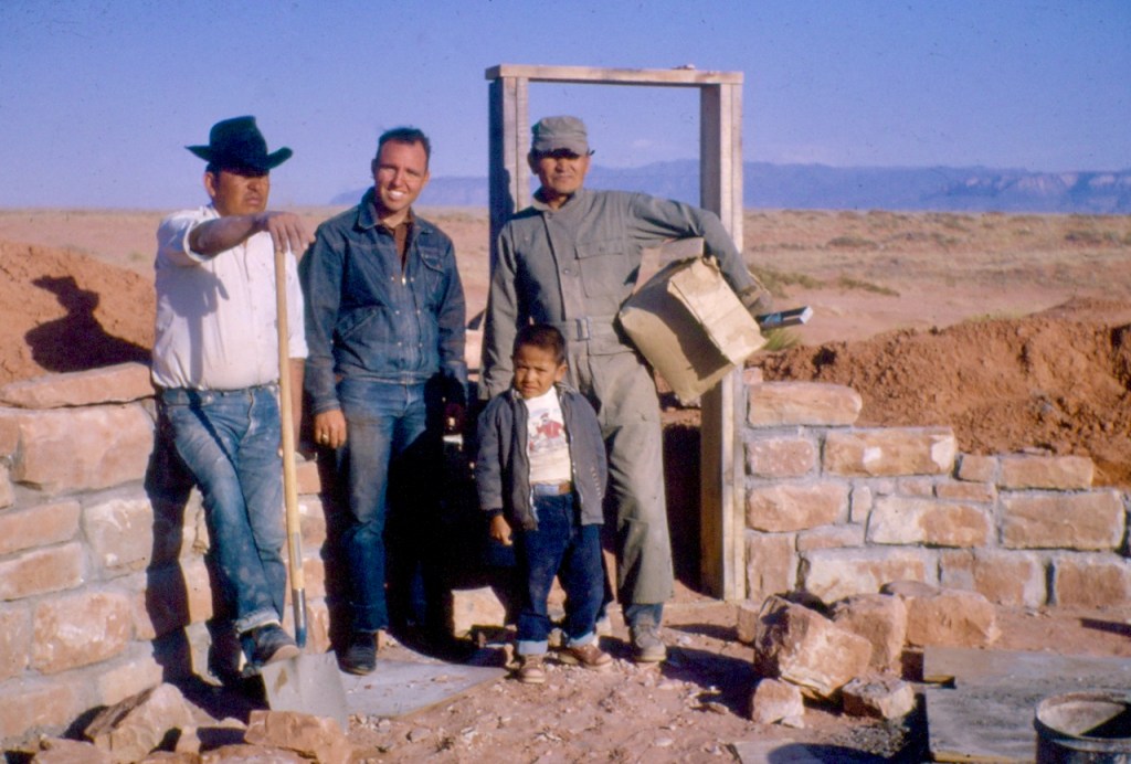 The first thing my Dad (David Scates) built at Red Mesa as a stone sided hooghan. I believe he was very impressed with the stone home of Esther Benally at Coyote Canyon (see the story titled The Cadillac and The Airplane). Esther, as a single mother and with the help of a nephew, had quarried stone for a home. This was not at all common in the 1960’s. The traditional home was a round eight sided log structure. So my Dad decided on stone for the sides rather than the logs.